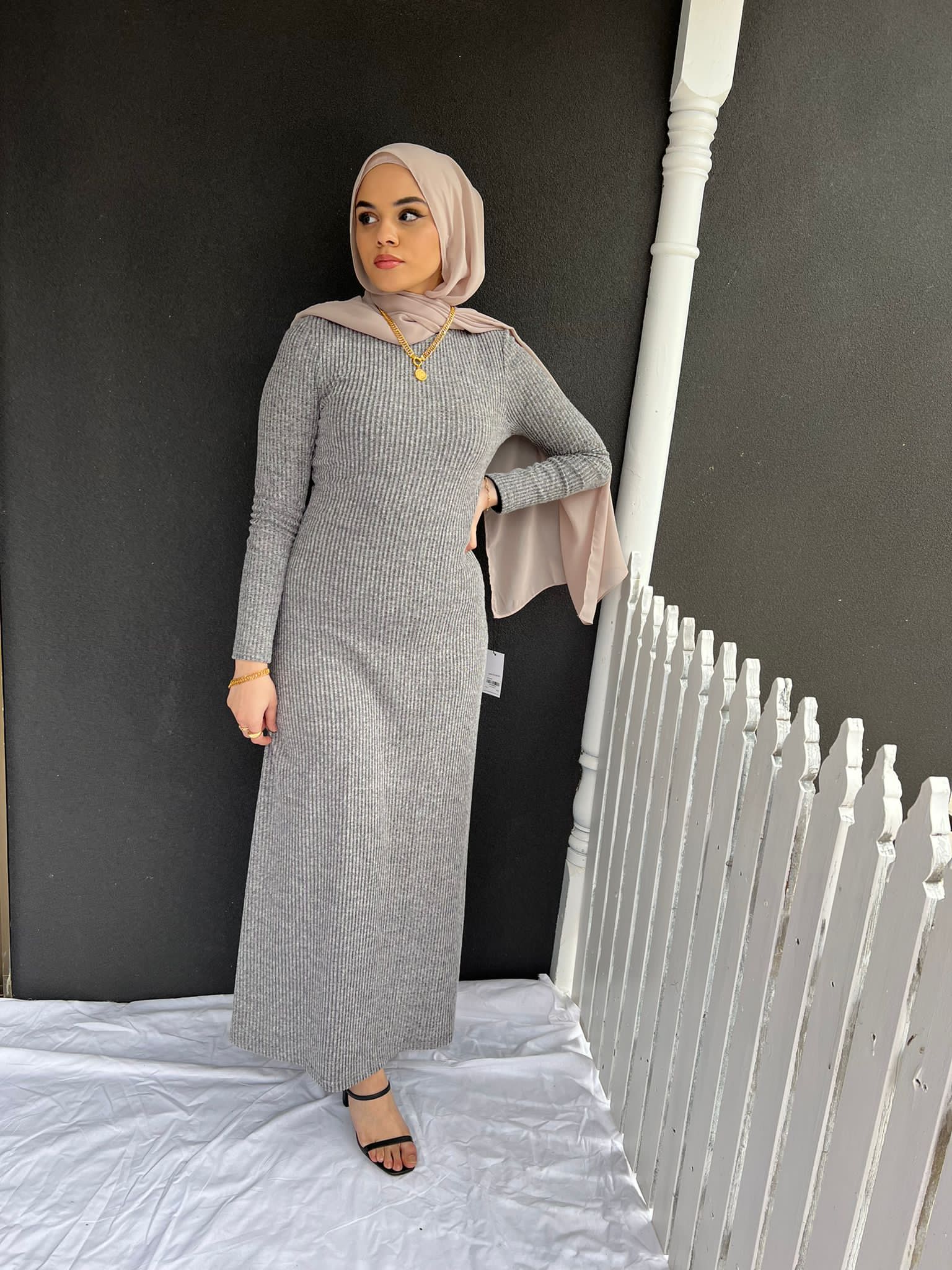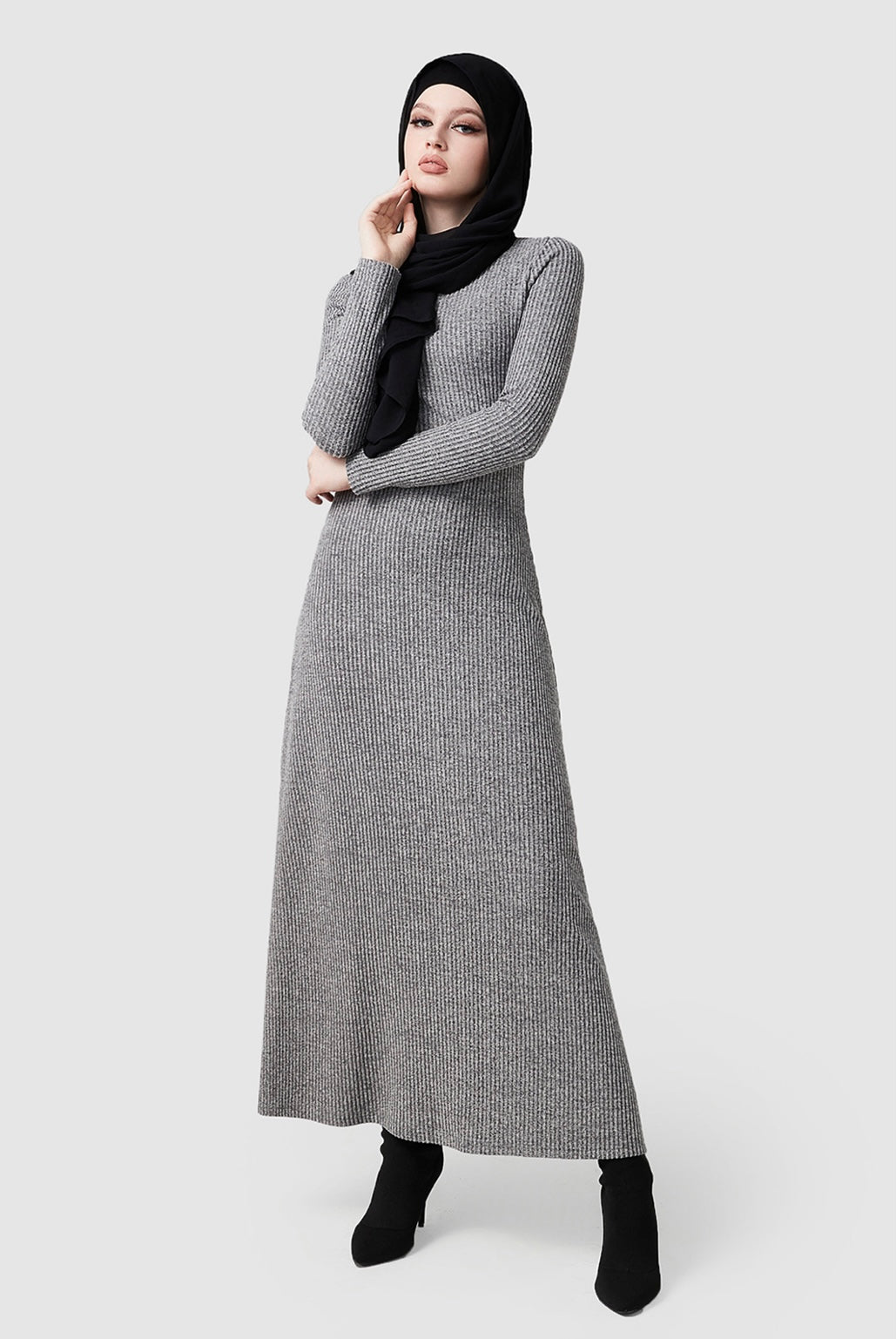 Made from a ribbed stretch-knit, the waist is cinched and flows into a gently flared skirt. This classic dress is perfect for layering and can be worn all year round. Pair it with our long black coat and a pair of boots for a stylish winter outfit.