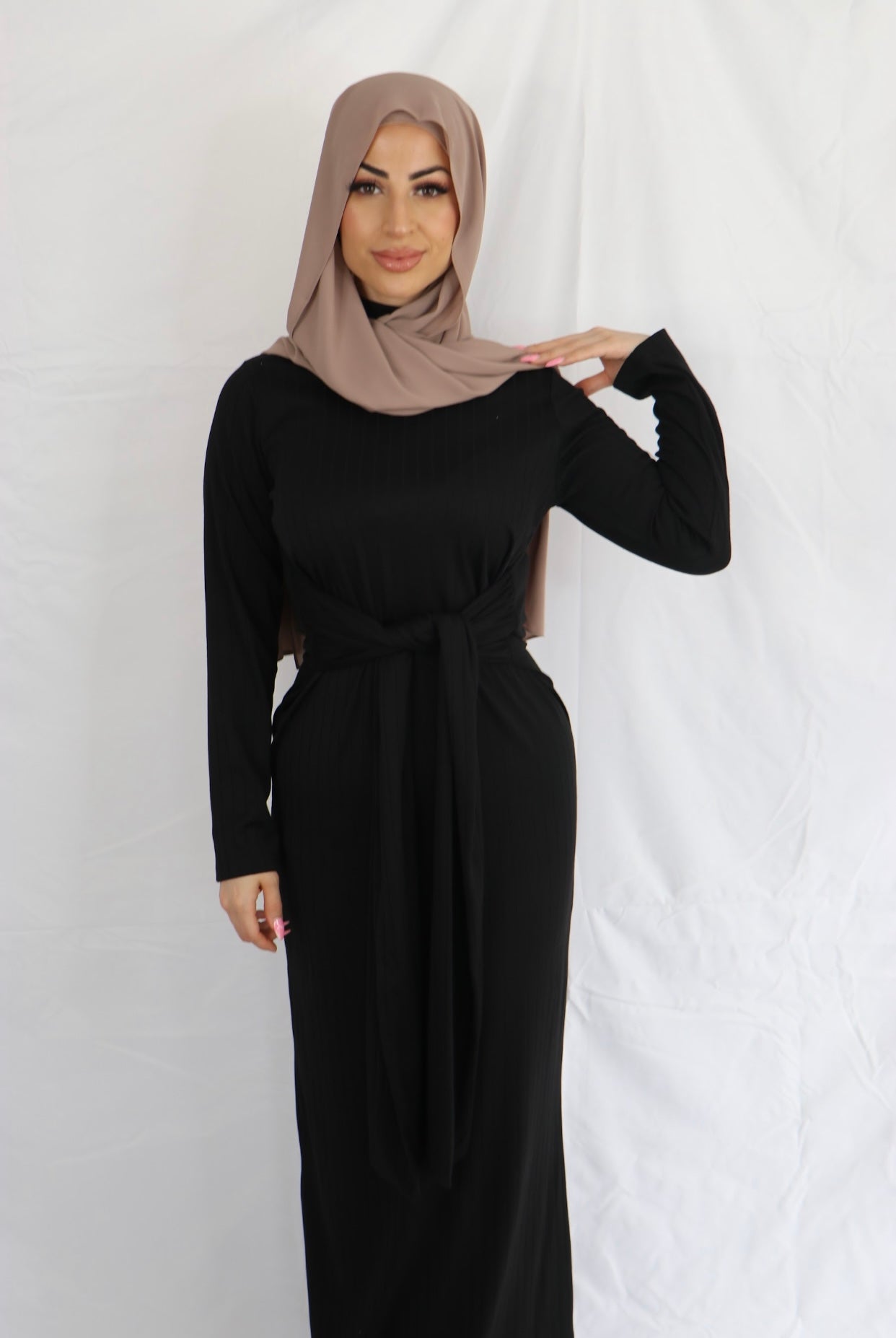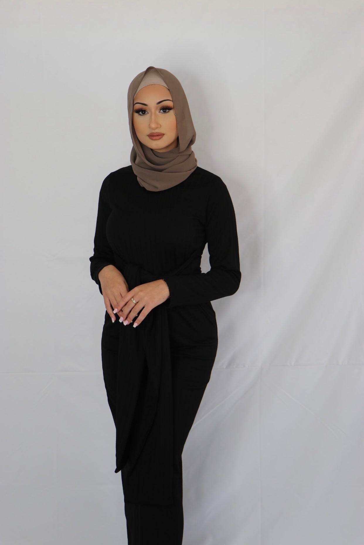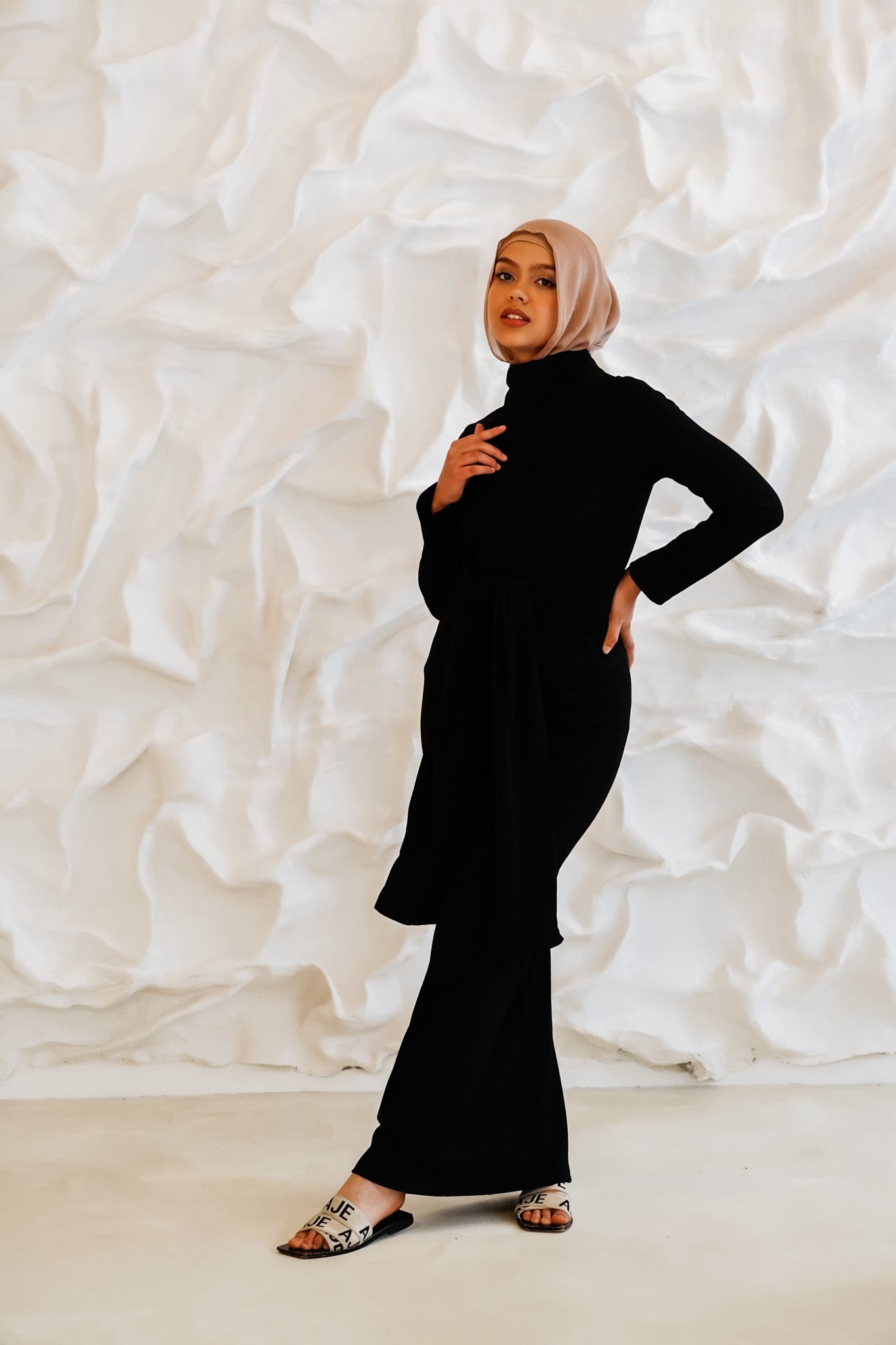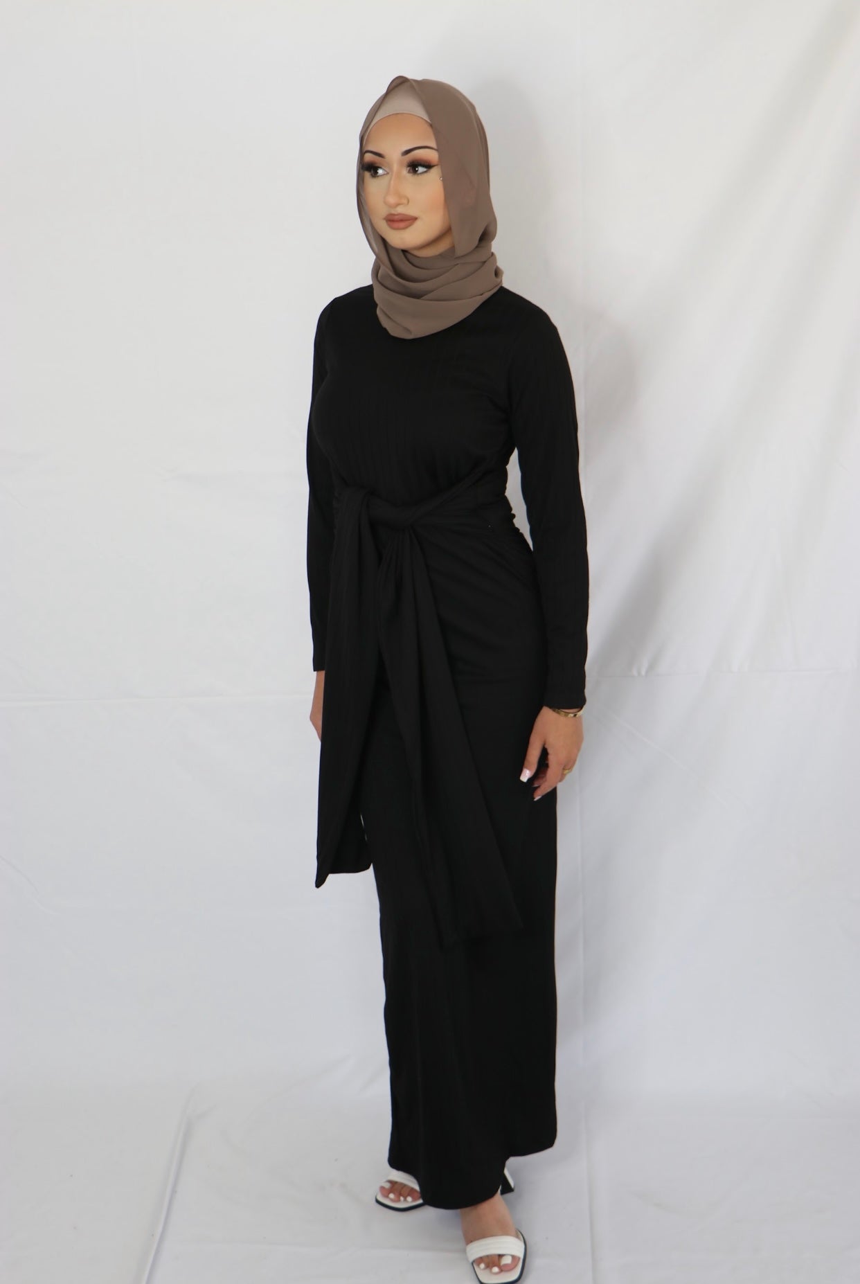 Ariana is a pinnacle of refined versatility, designed with sophisticated features you can effortlessly grace at different events. The front high round neckline is perfect for styling with dainty jewellery while the long sleeve detail makes it ideal for indoor or outdoor affairs. It is ribbed, meaning it can accommodate and complement any size or shape. Style it with simple strappy heels for a polished ensemble you can wear from office to dates
