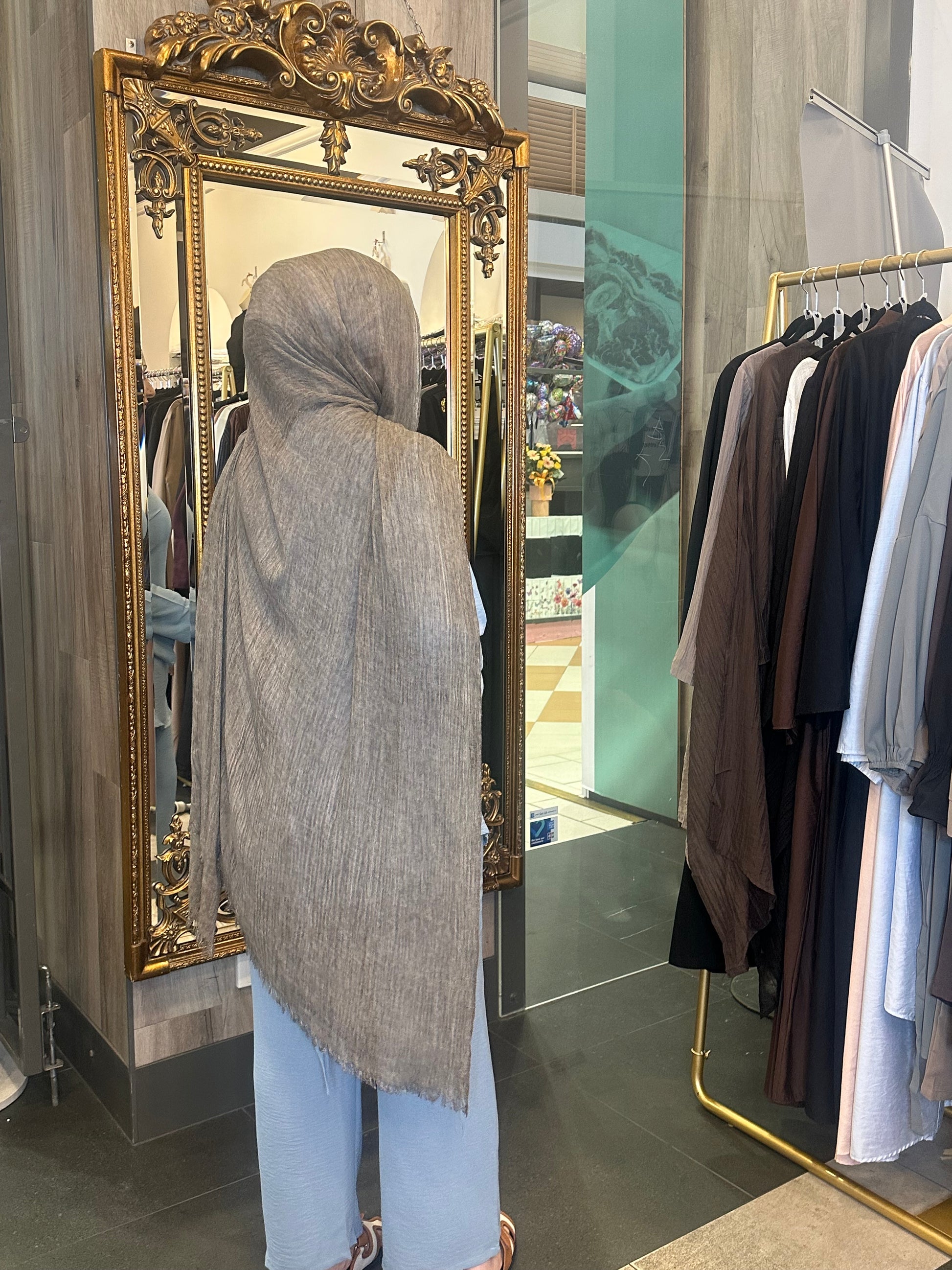 - Modest, loose-fit design