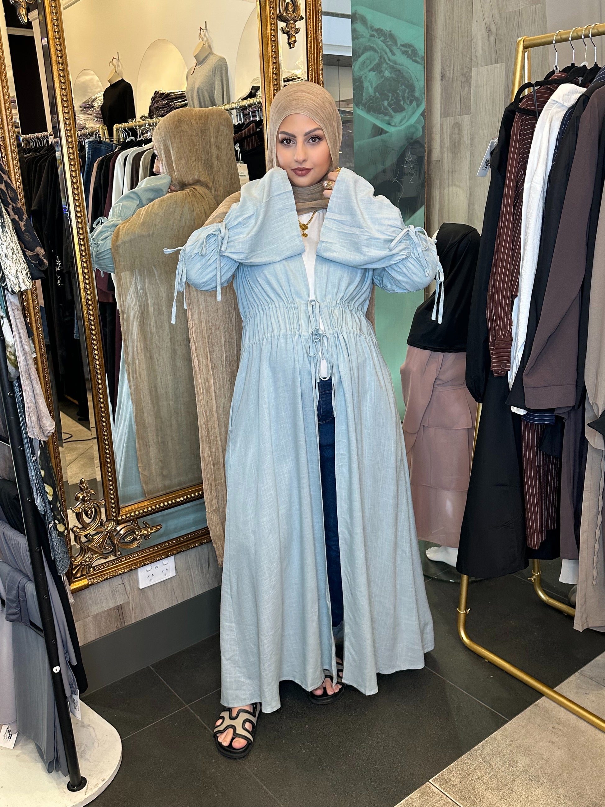 Layer over a slip dress or neutral set for an effortlessly chic, modest look. Add heels or flats depending on your occasion